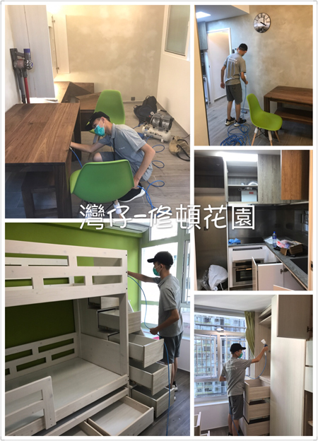 所有門、窗(在安全情況下)、鐵閘、地下、廚房以及洗手間、抽氣扇、抽油煙機、煮食爐、坐廁及其他預先要求清潔的傢俱等均會清潔